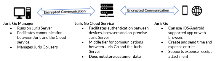 Juris Go Cloud Service: Owned by LexisNexis, this service authenticates users and facilitates communication between Juris and the Juris Go app.